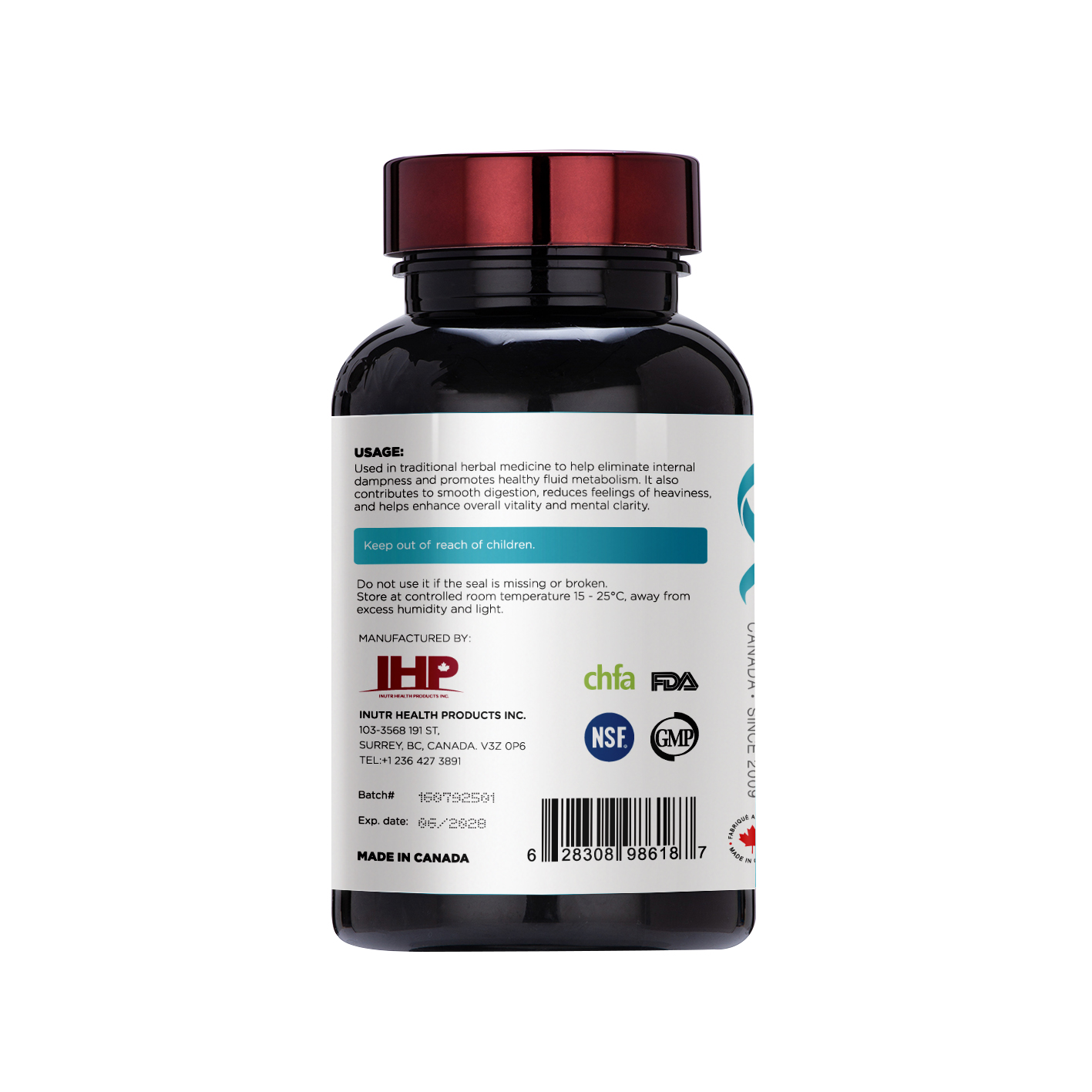Used in traditional herbal medicine to help eliminate internal dampness and promotes healthy fluid metabolism. It also contributes to smooth digestion, reduces feelings of heaviness,and helps enhance overall vitality and mental clarity.